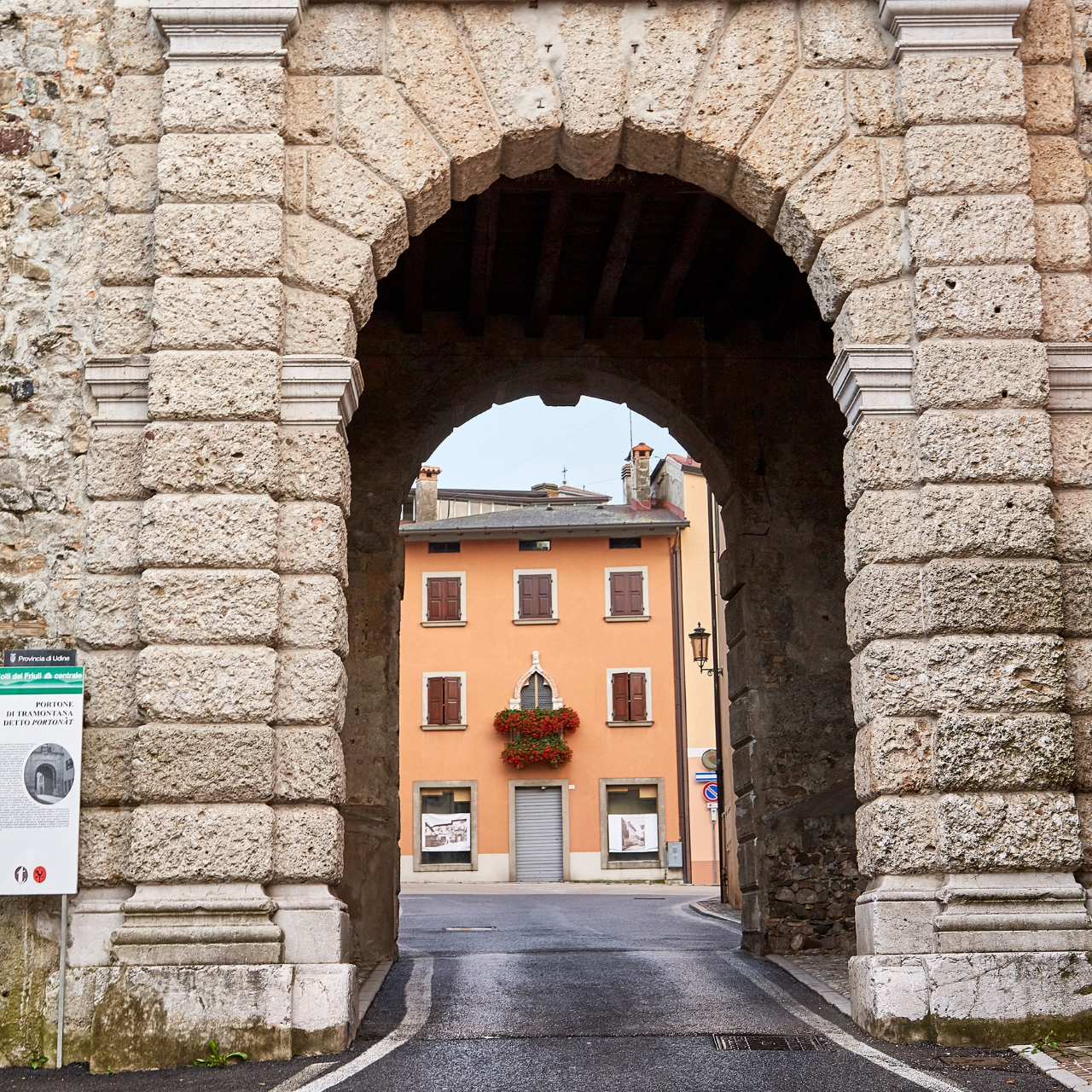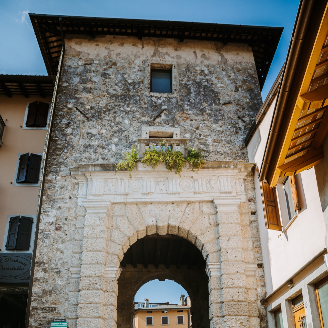 Porta ad arco riprogettata nel 1579 dal celebre architetto Andrea Palladio. La vecchia struttura faceva parte delle preesistenti mura medievali della città fungendo da monumentale ingresso al centro storico.